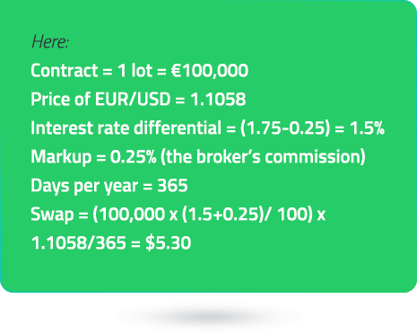 To find out the rollover fee, just use the handy forex swap rates calculator, on MetaTrader 4 or MetaTrader 5. Simply choose the financial instrument which you intend to hold an overnight position, fill in the currency and trade size details, and click on “Calculate.”